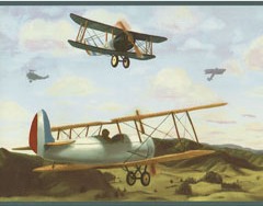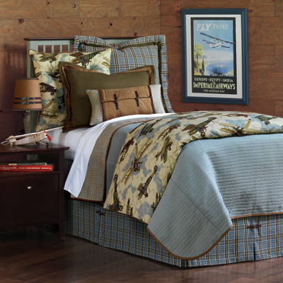 fabric. Bedding collection included hand-painted decorative pillows which enhance the theme. We tried to stay right on course using a coordinated wall coverings and Aviator decor accent pieces.