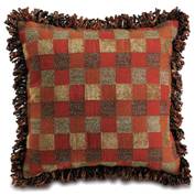 Checker board design fabric pillows used as accent pillows on loft sofa and used the same fabric as a throw