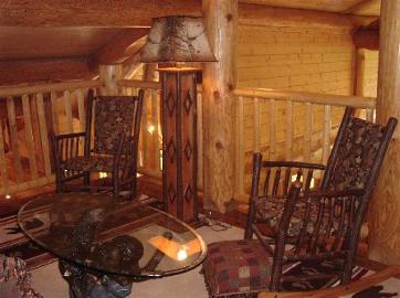 When you add just the right windows treatments to a design the entire look can come together as shown in the before and after photos below. This rustic interior design is a cabin loft where we coordinated the sofa with rocking chairs and added just the right touch roman fabric shades in the same fabric.