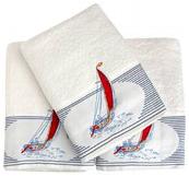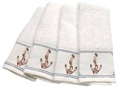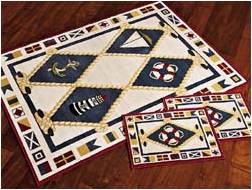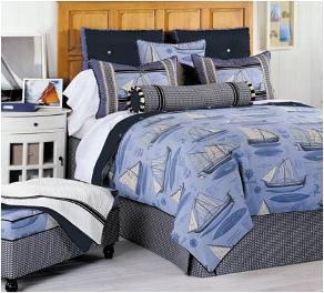 We choose the Mackinaw luxury bedding collection from Eastern Accents that depicts blueprint sketches of sailboats amidst a watercolor palette of blues and crisp white. Textured cable knit, rope trimming, and hand-painted accent pillows perfectly complement the collection's nautical theme. Mackinaw's versatile styling is at home in coastal and country cottages alike.
