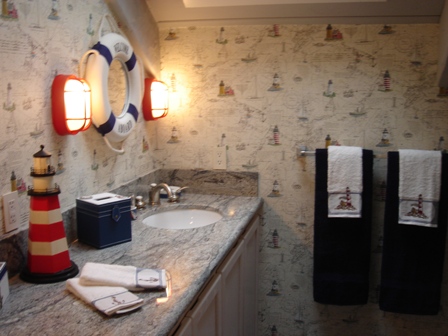 Nautical Bathroom Project Price Granite Countertop $2,000 Paint & Wallcovering including installation $1,000 Nautical Light Fixtures (set of two) $225 Undercounter Sinks & Faucets $450 Nautical Mirrors (set of two) $100 Nautical decorator accents & towels $200 Designer Fee $300 Project Fees $250 Total Nautical Bathroom Project $4,525