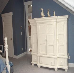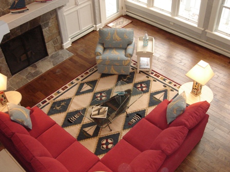 This project had lovely dormer windows that were large enough to serve as twin beds. Window seat cushions were reupholstered to match the bedding and accent pillows.
