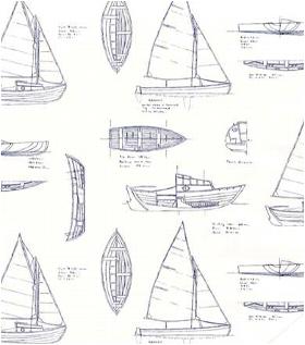 We chose blueprint sketches of sailboats as for the nautical sailboat wallpaper print that had a basic white background with royal blue sailboats. One wall was choosen as an accent behind the bed and the rest of the room was painted in a coordinating blue paint. with painted blue Coordinating fabric was used to create custom bedding for this bedroom.