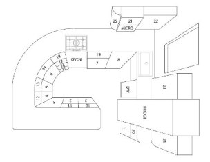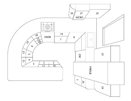 Are you receiving calls asking where something is located in your Kitchen? Our Kitchen Floor Plan and labeling system with locator number is a wonderful aid in helping to describe where to find everything in your kitchen. We also offer a kitchen cabinet labeling service and general routine kitchen organizing service.